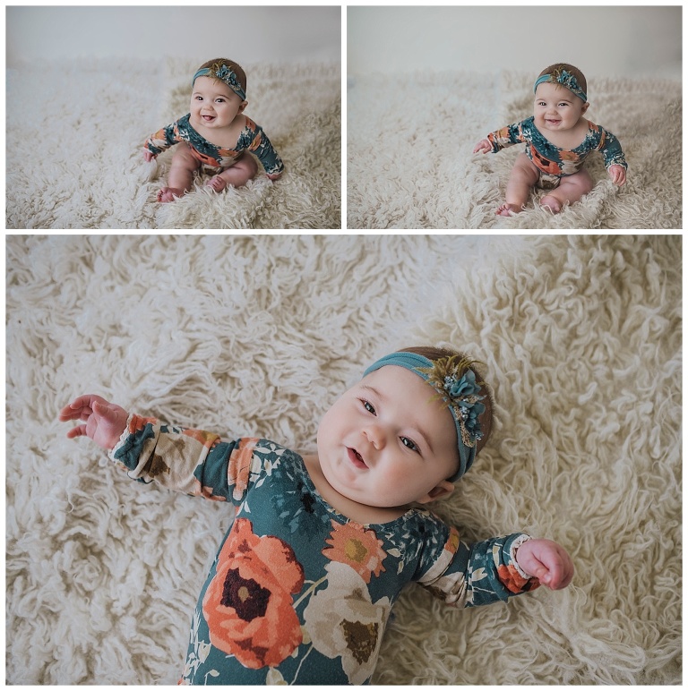This sweet angel is literally one of the happiest babies ever, no joke! She is always smiling and just full of love and laughter and I am just so excited that I get to watch her grow throughout her entire first year of life!! I love every outfit mom picked out from my collection too, she just shined in them. Take a look below at Emily’s six month milestone session.
