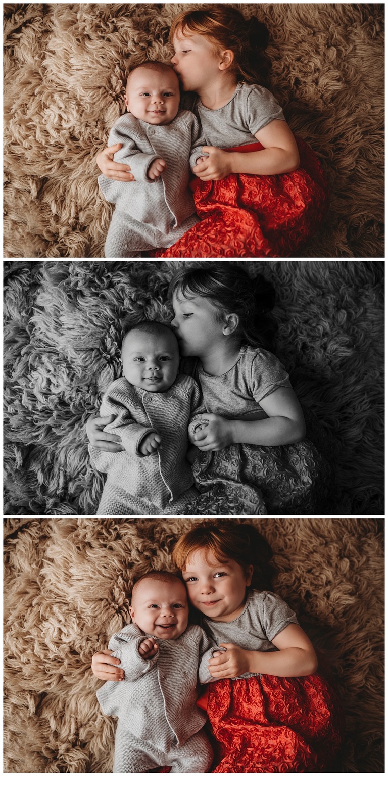 3 Month milestone sessions bring plenty of wonder and curiousness with these little sweet babies. Eric was all up for getting his picture taken and was so smiley and giggly and just loved that his big sister squeezed in for a few quick sibling shots! Mom had dressed baby in a simple little sweater button up that you can find always on sale at Zara baby, old navy and as well as Carters and then wanted nakey shots where I just draped one of my wraps over him. I love so much that mom wanted to go very neutral with heavy amounts of the final images being edited in black and white too! This makes images in my opinion, timeless and forever classic. Enjoy a peak into Eric’s three-month milestone session.