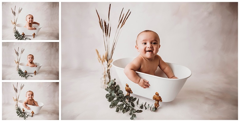 So happy to see Liam back for his 6 month milestone session and boy oh boy has he grown so much since his newborn session with me. He’s absoutely adorable! Full of smiles and personality and he just had the best sitter session ever! We may have worked hard at the end so mom could get some super cute bath tub shots but Liam pulled thru and was such a champ for his milestone session.