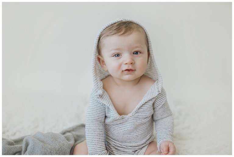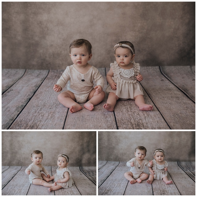 Both these two sweet little things have so much personality and spunk that I just adore watching them as they come in every few months. During their 7 month session, they finally are sitting up unassisted, have tiny little baby babbles for me and one even likes to flirt with you, can you take a guess who? Enjoy this sweet session of Miles and Viv