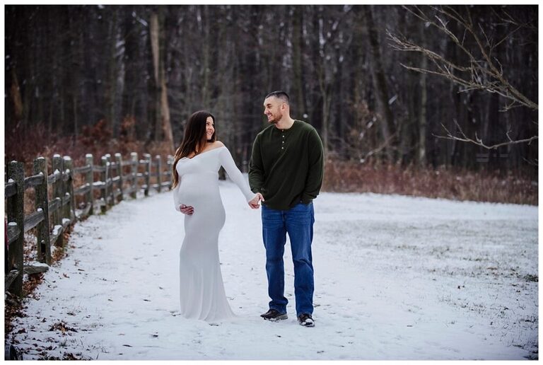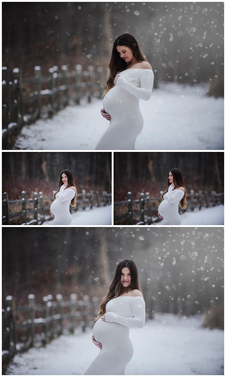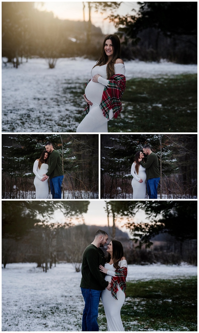 When you step out of the car and get ready for a winter maternity session, its usually pretty cold! I won’t sugar coat that! However, Alyssa’s husband came prepared for their session with a personal heater! Seriously the best thing I have seen in quite some time and is making me consider purchasing one for my sessions because it truly helped to warm up between shots and keep everyone happy! I loved that they wanted to include their furry family members as well to capture all the love between them all. Alyssa wanted to capture some traditional relaxed outfits for their family session and then change out to a beautiful white gown she purchased for some final shots in the snow! The session turned out just beautiful and I truly enjoyed meeting their family and capturing this beautiful time in their lives.