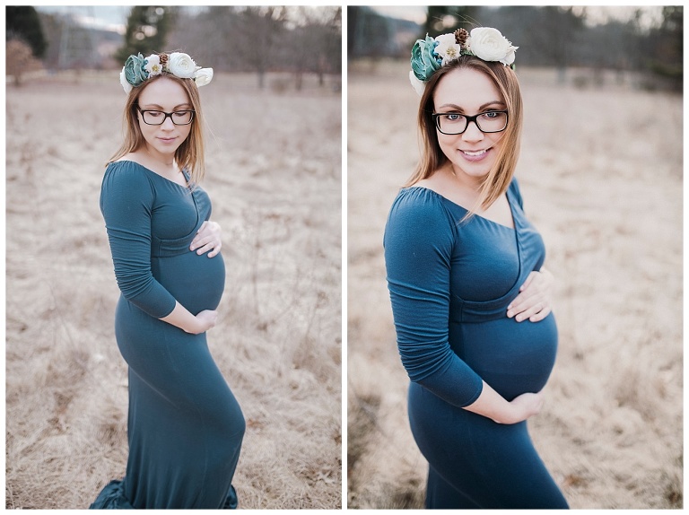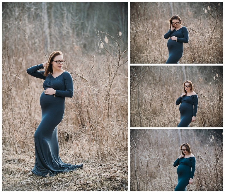 This maternity session will forever be a special session for me. Meaghan reached out to me at 36 weeks pregnant and was wondering if I could squeeze her in last minute to capture this special time in her life. She was super unsure her entire pregnancy if she even wanted to do these pictures because like many mama’s, they don’t feel comfortable in-front of a camera. Which let me shout it again from the roof tops.. I WILL MAKE YOU LOOK AMAZING… as that echo’s through your brain think about how bummed you would be if you missed your chance at this special time in my life. I am so glad that this mama didn’t! I was more than happy to accomindate Meaghan for her maternity session and got her in that week. She didn’t have to go shopping for outfits either since I already have a maternity client wardrobe closet that will accommodate everyone with a wide range of colors and styles. She chose a beautiful color to make her pop among the drag landscape all us Michiganders just love for spring and looked absolutely amazing. It’s transition season here in Michigan so and its super important to not blend into landscape for your portraits. The weather was absolutely perfect for us on the day of her session and the sun just glowed on her perfectly. I know she had the best time capturing that little baby girl growing in her stomach. Her review of my services had me in tears and I am just so glad, I was able to squeeze in this session for her and provide her with these images to cherish forever! Enjoy a look into Meaghan’s spring maternity session.
