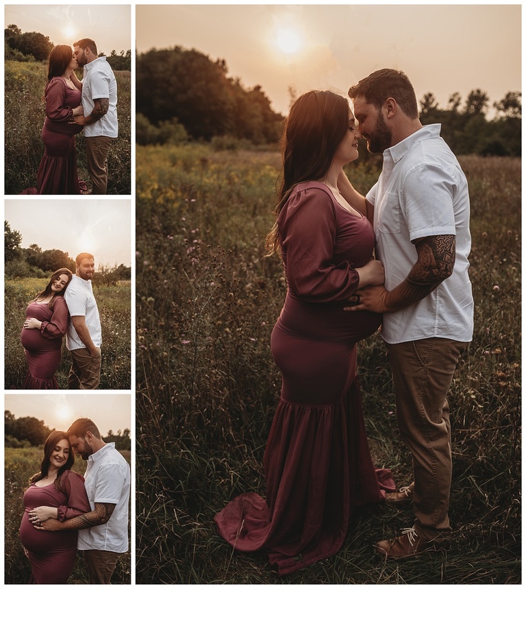The weather was still amazing enough that we were able to get into the water and do some amazing captures in the water. The sunset was super hazy due to fires out west that truly give all images in the summer with such a soft orange glow. It’s truly magical. Enjoy a sneak into their maternity session out in the fields and on the beach of Stony Creek.