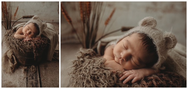 I was so excited to see this sweet Mama back for her newest little boy’s newborn session! She killed her maternity session while pregnant with Andres and her coming back to let me photograph this sweet little angle was just a dream! She wanted a neutral, earthy look for her son’s newborn session and these colors and sets for her sweet boy did not disappoint one bit.