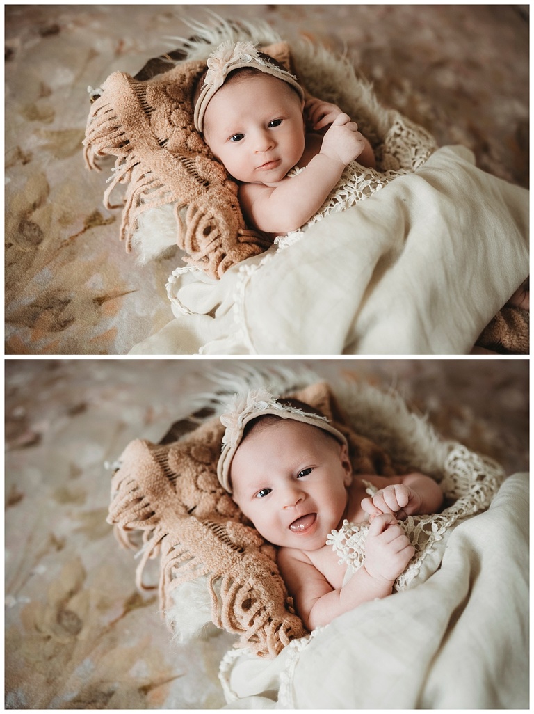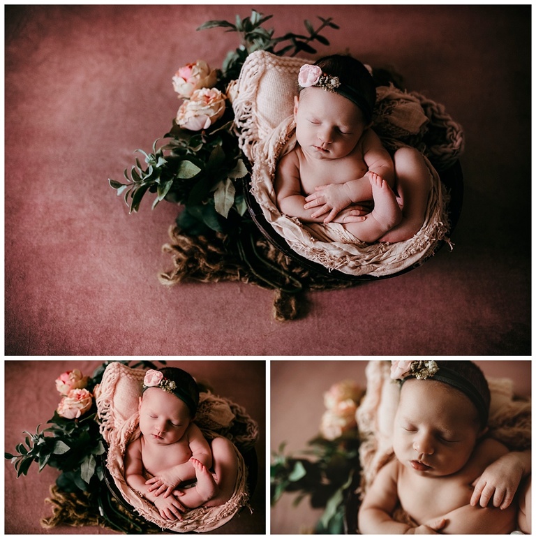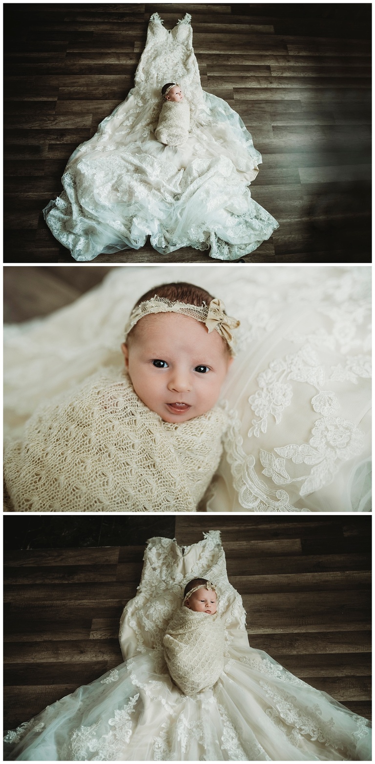 Oh sweet baby! This baby girl was as sweet as could be and I am not surprised because she comes from two amazing parents. I had the pleasure of photographing her parents for their maternity session and watching her mama and daddy become parents was just a joy to see. I know I don’t know my clients on a deep personal level but watching people become parents really is such a joy. Emmy is so loved and cherished and I loved having her set ups set up ready and her mama just so in love with seeing her in all her set ups, especially the one where Mama brought in her wedding dress for her to be placed on! It was just beautiful and just so natural. It makes all the hard work so worth it when your clients are just so happy with the end result. Catch a glimps into this beautiful newborn session.