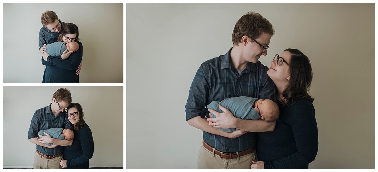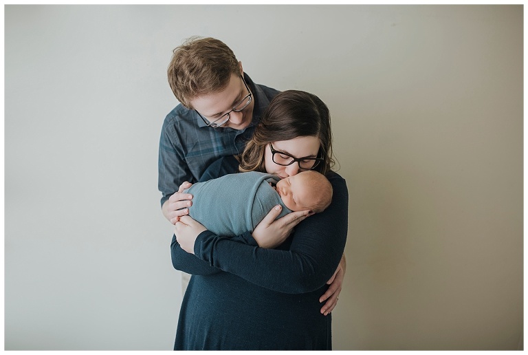 I just love when I get clients that book both my maternity and newborn package because I have already established a relationship with parents before they actually become parents and when I get to see them back in studio with their precious new bundles, it makes my heart so full because I just love seeing how happy parents are with their newborns. Stephanie and Andrew are such amazing caring parents already and their sweet little Emmitt.. oh my goodness, I could have snuggled him ALL day! He just loved to be held and who honestly doesn’t love to hold a baby and smell all there lovely newborn smells. I was in heaven with him. He was pretty alert when he first arrived and made just the sweetest little looks for me but he quickly got settled and was a rock star for his newborn session.
