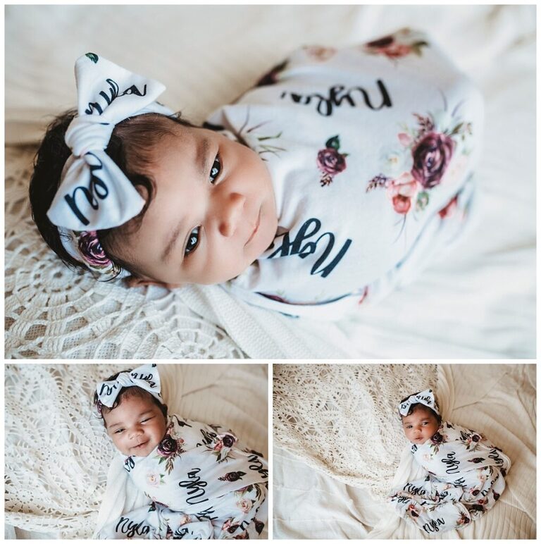 Beautiful Nyla was just perfect for her newborn session me. I love when baby girls come in with a full head of hair, its like a photographer’s dream because so many babies are not born with a full head of hair. Her mama brought in a special little wrap that Mama had specially made for her with her name written on it that we used during her session!