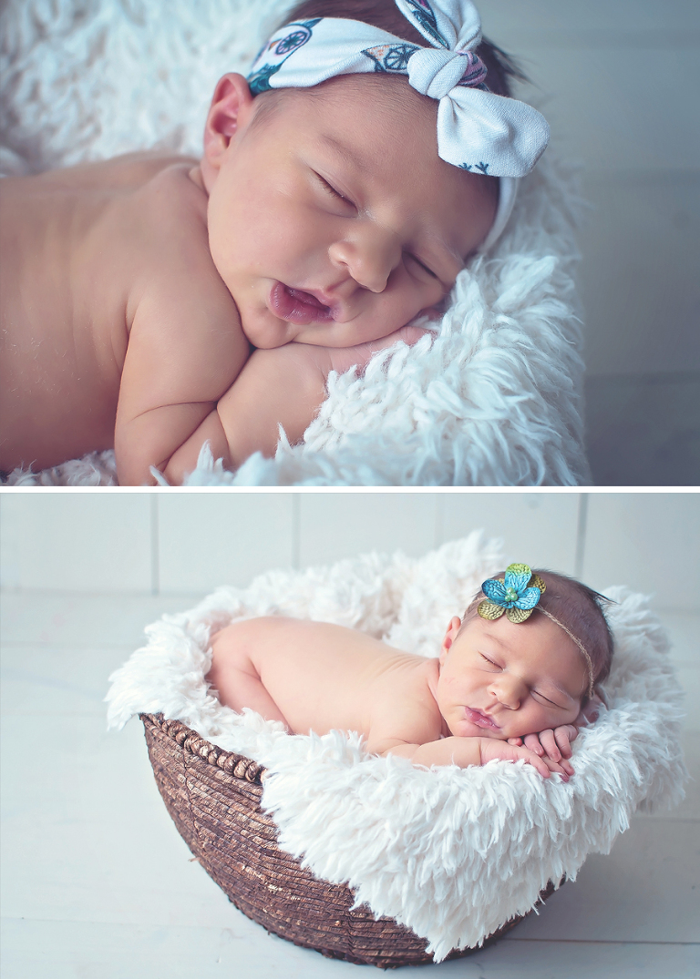 I am so pleased to introduce to the world the absolute beautiful Aubrey. Aubrey was 10 days old when she came to make her photo debut and she was just a perfect little angel. She hardly made a peep and slept like a beauty in her one basket that she had demanded that’s what she wanted. We tried a few other poses on my bean bag but this little lady was more content in a basket so I just went with it for her. I wouldn’t blame her either for only wanting that. I am sure it feels great being all super cuddly and cozy in a basket just her size.
