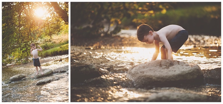 When I say that weather plays a huge factor in outdoor sessions, I truly mean it. This awesome little dude had his session scheduled THREE times, yes guys three times. We attempted this session back in May and the first time we rescheduled due to an unusual windy and chilly day and we knew we were going to be photographing in water with him. So of course, I need to make sure the weather cooperates for water sessions. The second and third times, you guessed it rain! It sure has rained a lot this summer because he isnt the only little guy who has gotten rescheduled. Forth times a charm though. We had a gorgeous evening and enjoyed every bit of photographing this silly fun loving little guy. I have had the pleasure of being this families photographer for years now and because I don’t currently accept new older children clients at the moment, I still could not let this session go unblogged because it was just amazing.